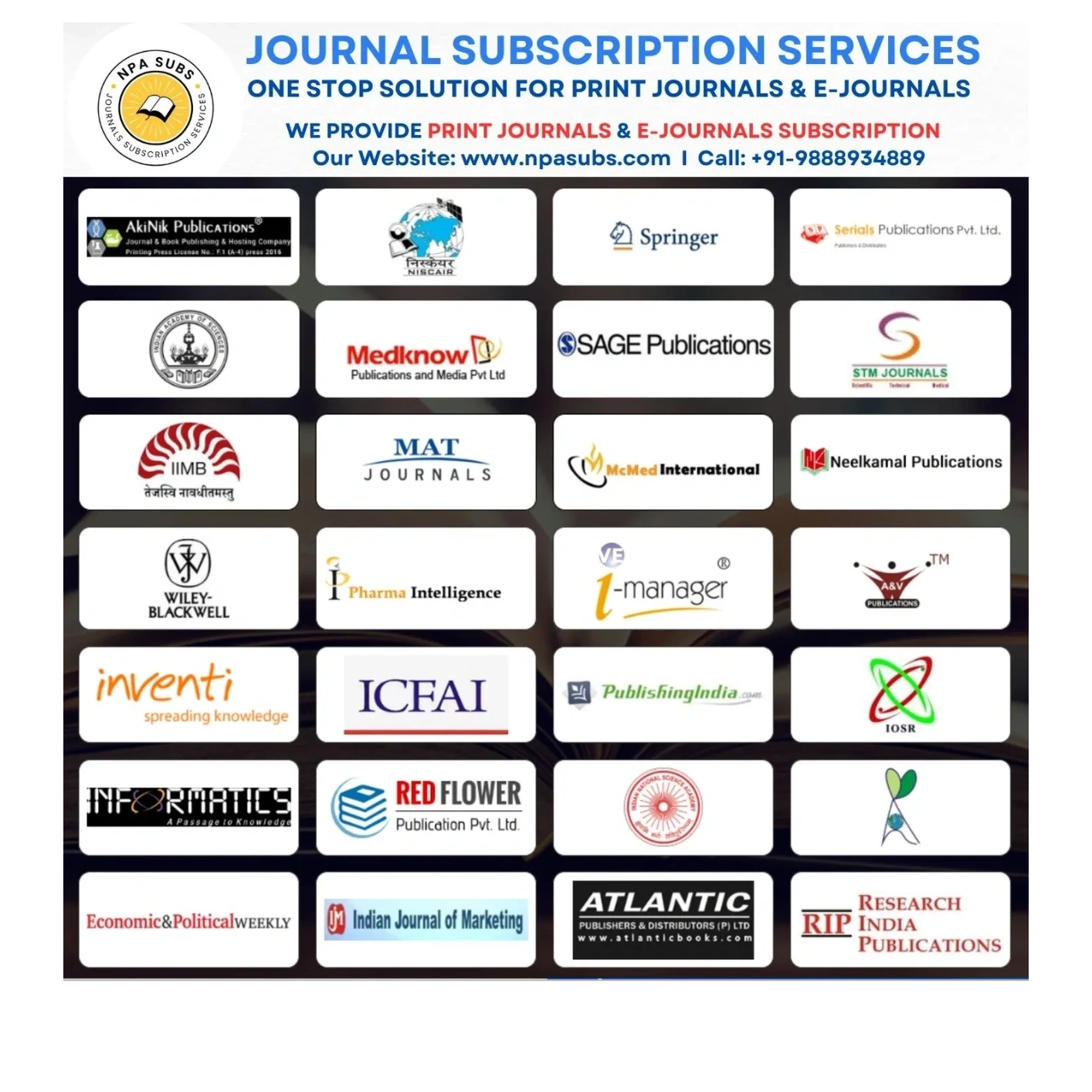 We provide national and international journal subscription across India through our online platform. Services include journal procurement, subscription management, online purchase processing, delivery coordination, and customer support. Any individual, student, professional, or institution may purchase journals through our website.